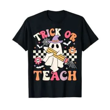 Show moreEmbrace the spirit of Halloween with the Trick Or Teach Groovy Teacher Halloween Retro Floral Ghost T-Shirt! Perfect for educators who love to sprinkle a bit of humor and creativity into their Halloween celebrations, this shirt stands out with its playful design featuring a charming ghost and whimsical bats. Crafted from lightweight fabric, it offers a classic fit that ensures comfort throughout the busy school day or during spooky festivities. Suitable for both men and women, this tee is a great reminder that teaching can be both fun and festive!