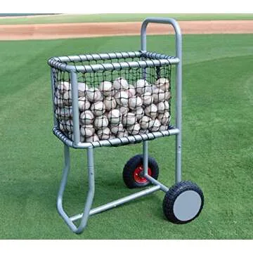 The cart is constructed from a durable powder-coated steel frame and has a premium mesh netted ball basket.