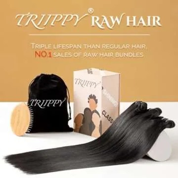 TRIIPPY Raw Human Hair Bundles,Triple Lifespan Than Regular Virgin Hair No.1 Sales Of Raw Hair Bundles Keep Silky And Bone Straight After Multiple Washes 100% Cambodian Raw Hair 18 18 18 inches