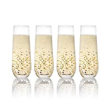 When placed alongside other stemless flutes, the **Trinkware Goldosa Stemless Champagne Flutes** stand out with their unique gold luster design and durable construction. Unlike many competitors, which often prioritize style over stability, these glasses combine both aspects, ensuring not only are they beautiful but they are also built to last. The set of four glasses provides excellent value, being more affordable than similar high-end options, while delivering quality and visual appeal that rivals premium competitors.