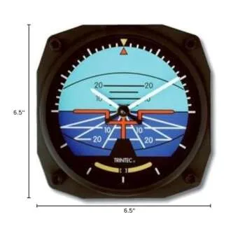 Trintec Artificial Horizon Clock 6.5" Square Novelty Aviation