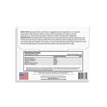 Show moreIf you're seeking a non-invasive, efficient solution for migraine and headache relief, look no further than the Trio Oh-Mi-Graine patch. This incredible product features an 8 hour time release technology, allowing for a steady absorption that lasts between 8 to 10 hours. Designed for those who understand the debilitating nature of migraines, this patch contains a blend of natural supplements specifically curated to tackle even the most severe headaches.
