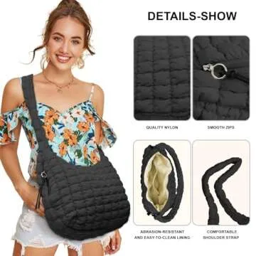 TRIOBASE Large Puffer Tote Bag for Women Quilted Crossbody Bag, Hobo Quilted Tote Bag Crossbody Shoulder Handbags Puff Purse Soft Fluffy Lightweight and Stylish