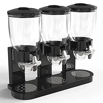 Show more Transform your kitchen experience with the Stylish Triple Food Dispenser, an innovative storage solution that combines style and functionality to elevate your culinary delights. Designed to simplify access to snacks while maintaining a chic aesthetic, this contemporary dry food dispenser is perfect for housing a variety of treats—from cereals to candies, nuts, and more. With its sleek modern look, it not only serves a practical purpose but also adds a touch of elegance to any kitchen decor. Say goodbye to cluttered cabinets and hello to convenient organization that is always within easy reach!