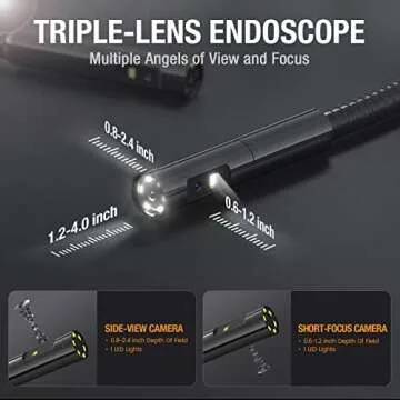 Introducing the Teslong NTS500 Pro Triple Lens Endoscope, a cutting-edge inspection camera designed for industrial mechanics and DIY enthusiasts alike. Featuring an innovative three-camera probe configuration, this state-of-the-art endoscope provides unparalleled clarity and versatility. The unique side-view camera with short focus excels in navigating tight spaces, ensuring that you capture every intricate detail. Paired with a robust 5" 720P IPS LCD screen, enjoy vibrant imaging in crisp...