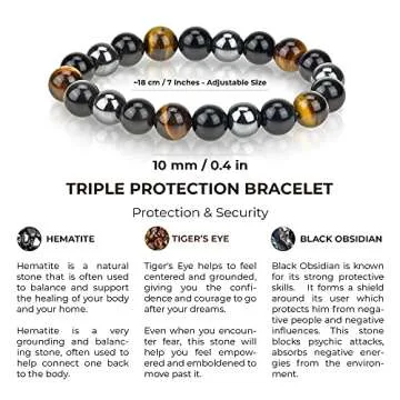 Triple Protection Bracelet - For Protection - Bring Luck And Prosperity - Hematite - Black Obsidian - Tiger Eye - Stone Bracelet