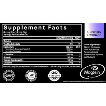 Show moreUnlock the secret to a restful night with our Triple Sleep Magnesium L-Threonate Powder, a meticulously crafted sleep formula designed to help you achieve deep, restorative sleep. Featuring clinically proven Magtein Magnesium L-Threonate, combined with soothing ingredients like L-Theanine, Apigenin, Valerian Root Extract, and Melatonin, this unique blend works synergistically to support relaxation, lower cortisol levels, and enhance overall sleep quality. With our deliciously dreamy Blueberry Lemonade flavor, bedtime becomes a treat you look forward to every night!