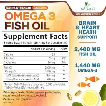 - Triple Strength Fish Oil: 1200mg per softgel