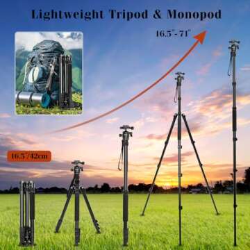 Tripod for Camera • 68" Camera Tripod & Monopod with 360° Ball Head • Lightweight Aluminum Travel Tripod with Bag • Extra 1/4" QR Plate and Phone Holder • Compatible with Canon Nikon Sony and iPhone