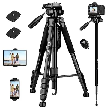 Constructed from high-quality aluminum alloy, this professional tripod boasts an impressive load-bearing capacity of up to 15 lbs, accommodating various devices. The inclusion of a mid-level spreader and rubber feet enhances its stability, allowing you to shoot with confidence, even in windy conditions. Not limited to traditional cameras, this tripod is compatible with an extensive range of devices, including popular DSLR models from brands like Canon and Nikon, alongside smartphones, tablets, and camcorders.