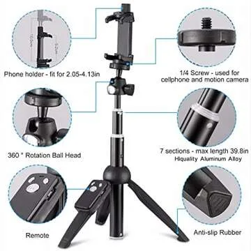 Tripod Monopod Selfie Stick, Long Extendable with Wireless Remote Shutter Control Phone Clip Holder,Compatible with All Cellphones