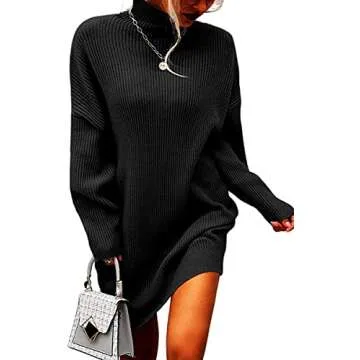 Trish Lucia Womens Turtleneck Oversized Sweaters Dress Long Sleeve Drop Shoulder Pullover Loose Knit Dresses Black