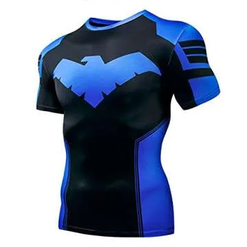 Triv Men's Compression Workout Nightwing Logo Short Sleeve T Shirt (Nightwing, Medium)