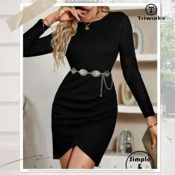 TRIWORKS Western Metal Concho Belt for Women Western Cowgirl Chain Belts for Dresses Jeans Country Concert Outfit Belt