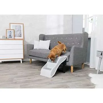 TRIXIE 3 Step Pet Stairs, Lightweight and Collapsible, Easy to Store, Non-Slip Treads, Gray