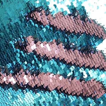 TRLYC 1 Yard Turquoise and Rose Pink Reversible Sequin Fabric for Weddings and Events