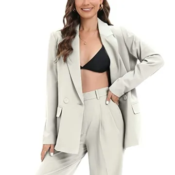 Show moreIntroducing the TRNY Women's Oversized Double-Breasted Suit Blazer Jacket – your ultimate wardrobe staple that seamlessly combines chic sophistication with everyday practicality. Designed for the modern woman, this stylish blazer is crafted from a luxurious drape stretch fabric that offers both comfort and a tailored look. It features a double-breasted silhouette with chic self-covered buttons, redefining the essence of timeless fashion while maintaining an effortlessly trendy vibe.
