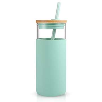 Tronco 20oz Glass Tumbler Glass Water Bottle Straw Silicone Protective Sleeve Bamboo Lid - BPA Free (Midnight Green/ 2 Pack)