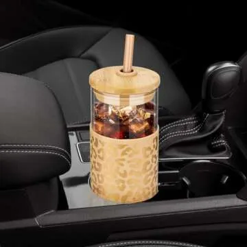 Tronco 24 oz Glass Tumbler with Straw and Lid - Glass Cup with Lid and Straw, Smoothie Cup, Iced Coffee Cup - Bamboo Lid and Protective Silicone Sleeve - BPA-Free