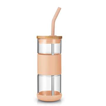Show moreExperience the perfect blend of function and style with the Tronco Glass Tumbler featuring a sleek bamboo lid and a convenient straw. Designed for those who value both aesthetics and practicality, this 18OZ tumbler is ideal for iced coffee, smoothies, or water, making hydration enjoyable and stylish. The clear glass body showcases your drink’s color, while the soft silicone sleeve ensures a comfortable grip and enhanced stability, preventing slips and spills. Say goodbye to disposable cups and hello to a sustainable lifestyle with this reusable beverage companion.