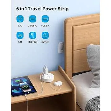 TROND Travel Power Strip - Retractable Extension Cord 5ft Ultra Thin Flat Plug, Retractable Power Strip with 3 AC Outlets 3 USB Ports (2 USB C), Cruise Ship Essentials, for Home Hotel Dorm Room, White