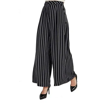 Tronjori Women High Waist Casual Wide Leg Long Palazzo Pants Trousers Regular Size(XS,Black White)