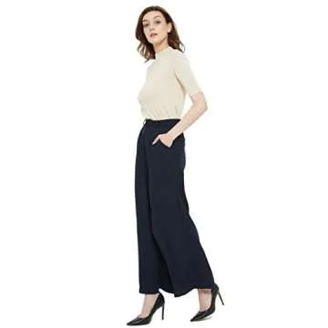 Tronjori Women High Waist Casual Wide Leg Long Palazzo Pants Trousers Regular Size(XS,Navy Short)