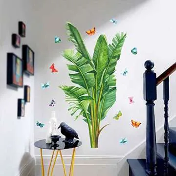 Tropical Plants Wall Stickers Palm Leaf Wall Decals Vinyl Peel and Stick Wallpaper for Bedroom Living Room Nursery and Office