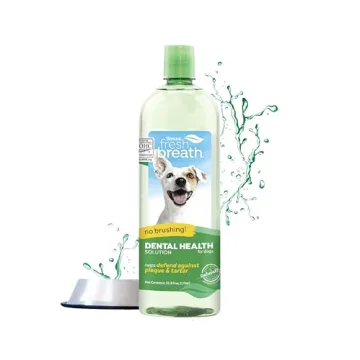 Transform your dog's dental hygiene routine with the TropiClean Fresh Breath Water Additive, a revolutionary solution designed to simplify oral care for your furry friend. Forget the hassle of traditional dog toothpastes and brushes; this innovative product provides an effortless way to ensure your dog's mouth stays clean and fresh. Simply add the tasteless mouthwash to your dog's water—it's so easy! Crafted for busy pet owners, this water additive seamlessly integrates...