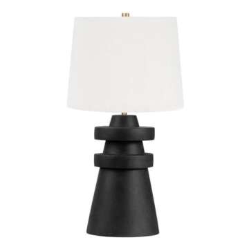 Show moreIntroducing the Troy Lighting Grover Table Lamp, an exquisite addition to your home decor that seamlessly combines function and style. Standing tall at 25.25 inches and measuring 16 inches wide, this lamp features a sophisticated finish of Patina Brass and a luxurious Ceramic Charcoal base. Designed to enhance any room with its elegant silhouette, it utilizes an incandescent bulb to create a warm and inviting atmosphere, perfect for reading or relaxing in style.