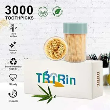 Show moreIntroducing the TRTRin Bamboo Wooden Toothpicks – a premium oral care solution that combines functionality with eco-friendliness. Each pack offers a generous 3000 count of quality bamboo toothpicks, ensuring you are well-equipped for any occasion. With 200 sticks per pack and bundled in two reusable, clear holders, they are designed for convenient storage and portability. Made from the finest 100% natural bamboo, these toothpicks are not just a healthier alternative; they are also a beautifully crafted accessory that reflects your commitment to the environment and dental hygiene.