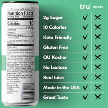 Tru Focus Seltzer, Apple Kiwi Flavored Sparkling Water Made with Real Fruit Juice - Nootropic Drink plus Yerba Mate Extract - Natural Caffeine, Kosher, GF, No Added Sugar Beverages, 12oz (Pack of 24)