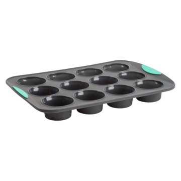 Trudeau Structured Silicone Muffin Pan - Non-Stick 12 Cup Grey/Mint
