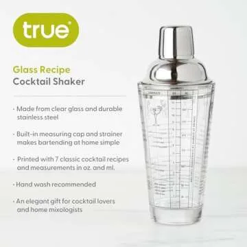 Introducing the True Glass Cocktail Shaker, your ultimate bar accessory designed to elevate your cocktail crafting experience. This sleek and stylish 13.5-ounce glass shaker, equipped with a jigger cap and a strainer lid, empowers you to shake and mix a wide variety of cocktails seamlessly. Unlike plastic alternatives, this premium glass shaker not only enhances the aesthetics of your home bar but also guarantees superior durability and performance. Whether you're a seasoned bartender or...