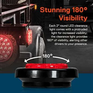 STUNNING 180° VISIBILITY - Each 2" round LED clearance light comes with a protruded light for increased visibility. When you place the clearance light on the side or the back of your tractor or trailer, the clearance light provides 180° of visibility, alerting other drivers to your presence. The specially designed clearance lights are designed using textured edges that help disperse light at a wider angle in comparison to lights that are flush with their grommet.