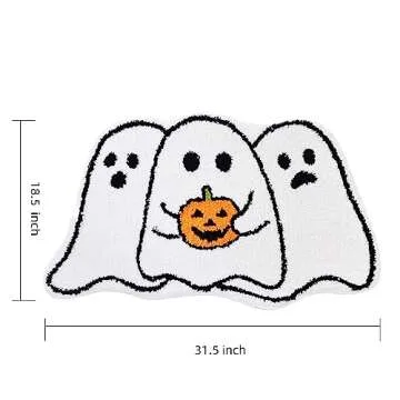 Show moreTransform your home into a spooky sanctuary this Halloween season with the TRUEDAYS Bathroom Rugs Halloween White Rug. Delightfully crafted with vibrant graphics featuring adorable ghosts and an orange pumpkin, this cute bath mat is not only a fabulous decorative piece but also serves a functional purpose in any room. Measuring 31.5 inches by 18.5 inches, it's the perfect size to add charm to your bathroom, kitchen, or even your living room. Made from 100% high-quality polyester microfiber, this rug is as soft as it is stylish, ensuring guests will enjoy both comfort and aesthetics as they enter your home.