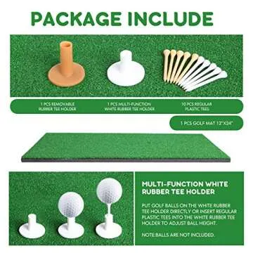 Show moreElevate your golfing practice with the TRUEDAYS Golf Mat, an incredibly versatile and durable golf hitting mat designed for both indoor and outdoor use. Measuring a perfect 12" x 24", this mat is crafted from high-quality woven nylon turf, ensuring longevity and a realistic feel as you strike your shots. Its lightweight design makes it exceptionally portable, allowing you to set up quickly on any surface – whether it’s your patio, garage, or even at the park. Each package comes complete with two rubber tee holders and ten tees, providing everything you need to start improving your golf swing right away.
