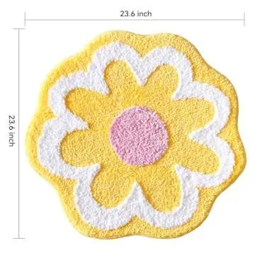 Show more Introducing the TRUEDAYS Yellow Bathroom Rug - a delightful addition to your bathroom that combines style, comfort, and practicality. This charming rug showcases a beautiful floral design, injecting a burst of color into your space with delightful hues of yellow and pink, reminiscent of a spring garden. Made with an innovative double-layer technique, it offers a unique three-dimensional texture that not only catches the eye but also envelopes your feet in plush softness. Measuring 23.6 x 23.6 inches, this rug is the ideal size to fit in various locations, from your bathroom to the shower area, instantly refreshing your décor.