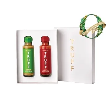 Show moreIndulge in a luxurious culinary experience with TRUFF's Holiday Gift Set, a carefully curated collection of gourmet hot sauces designed for true flavor enthusiasts. This festive set features vibrant green and red labels, encapsulating the essence of the holiday spirit. With the Jalapeño Lime Hot Sauce, you can expect a fresh and mild heat that delights the palate without overwhelming it, thanks to the harmonious fusion of green jalapeños and the zesty tang of lime. On the other hand, the Habanero Hot Sauce is meant for those who crave an intense flavor experience, delivering a robust heat with the rich blend of chili peppers and fiery red habaneros. What truly sets this collection apart is its infusion of black winter truffle, elevating each sauce with a touch of luxurious umami that transforms any dish into a gourmet experience.