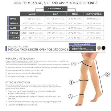 Show moreIntroducing the Truform 20-30 mmHg Compression Stockings, designed for both men and women, offering unparalleled support and comfort to your legs. These thigh-high stockings are made from a durable knit blend of nylon and spandex, ensuring a snug yet comfortable fit for every wearer. With a compression level of 20-30 mmHg, they promote healthy blood circulation and effectively alleviate symptoms associated with various venous conditions such as DVT, varicose veins, and edema. The thoughtfully designed silicone grip-lined top band ensures that the stockings stay securely in place throughout the day, allowing you to move freely without constant adjustments. Notably, the open-toe design of these stockings enhances breathability while making it easier to wear sandals, making them perfect for warm weather occasions.