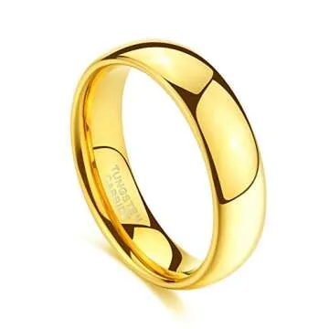 Show moreIntroducing the TRUMIUM 6mm 24k Gold Plated Tungsten Ring Wedding Band – a perfect blend of elegance and durability designed for those who value timeless style. Crafted with precision, this stunning wedding band features a high-polished finish and a classic dome design, ensuring it remains a stylish accessory for years to come. Available in sizes ranging from 2mm to 8mm, this ring is suitable for men and women alike, making it an ideal choice for couples who want to share their eternal love through a matching band. The 24k gold plating adds a touch of luxury, while the hypoallergenic properties ensure a comfortable fit for everyone. Whether you prefer sleek silver, romantic rose gold, or vibrant rainbow hues, this ring is made to cater to diverse tastes, ensuring you find the perfect match for your unique style.