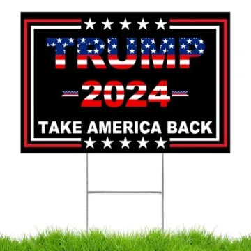 Show moreIntroducing the vibrant and impactful Trump 2024 'Take America Back' yard sign, a must-have for every supporter looking to make their voice heard. This eye-catching sign measures a substantial 17'x12', ensuring that your message stands out prominently in any setting. Crafted with care, this sign features double-sided printing to maximize visibility from both directions. It showcases the compelling phrase 'Trump 2024 Take America Back', an essential statement for supporters of the movement. Made by a renowned brand committed to quality, this sign is designed not only for aesthetic appeal but also for durability. Constructed from 5.5mm thick heavy-duty corrugated plastic, it is immensely robust and built to withstand various weather conditions without fading. This means that whether it is sunny, rainy, or windy, your display of support will remain intact and vibrant all year round.