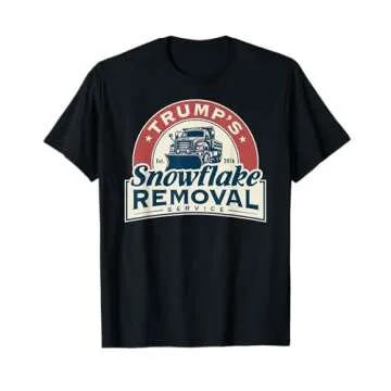 This graphic tee showcases a unique design that depicts the whimsical idea of ‘snowflake removal’—a nod to the light-hearted banter often associated with political debates today. Available in a sleek black hue, it adds versatility to your wardrobe, making it suitable for various occasions.