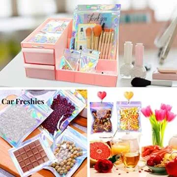 Trunple Smell Proof Bags & Resealable Foil Pouch Mylar Sample Bag Great for Party Favor Food Storage (Holographic Color) (50pcs-6x9 inch)