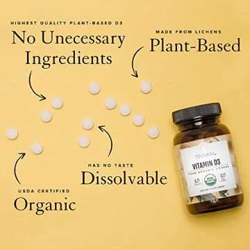 Truvani Organic Vitamin D3 - Plant-Based, USDA Organic, Gluten-Free, Non-GMO, Vegan D3 Supplement - Supports Bone, Immune & Brain Health - 30 Tablets