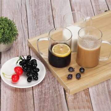 Trwcrt 15 oz Glass Coffee Mug Set of 6, Clear Coffee Mugs with Handle for Hot Beverages, Large Wide Mouth Glass Cup for Latte, Cappuccino, Hot Chocolate, Tea and Juice