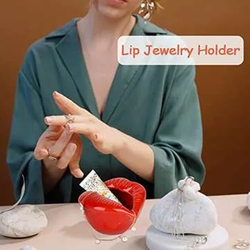 Trycooling Ceramic Red Lips Lipstick Ring Holder Jewelry Tray Rack Decorative Cosmetic Storage Display Holder Desktop Hairpin Storage Organizer Birthday Choice (Light Red)