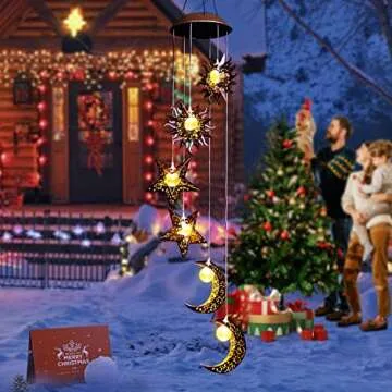Show moreTransform your outdoor space with the enchanting Tryme Solar Wind Chimes, an exquisite blend of functionality and artistry, designed specifically to bring a vibrant glow to your garden, patio, or any outdoor nook. These stunning wind chimes feature intricate representations of the sun, moon, and stars, creating a magical ambiance that's perfect for cozy gatherings. Not only do they delight the eyes, but they also evoke a warm atmosphere, making them a perfect gift for beloved mothers or grandmothers on any special occasion.