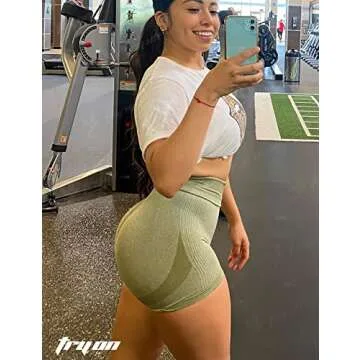 Tryon Women High Waist Workout Gym Simle Contour Seamless Yoga Shorts Khaki S