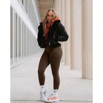 TRYTO Women's Active Easy Long / Regular Length Seamless Scrunch Legging Workout High Waist Butt Lifting Gym Fitness, Long Length Cocoa, Large
